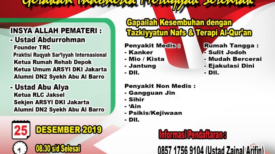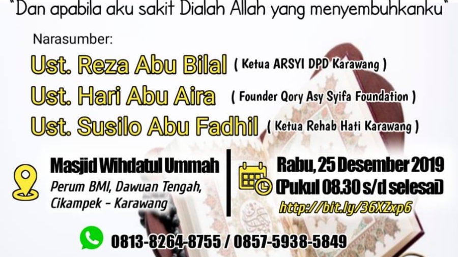 dauroh WORKSHOP SPESIAL KUPAS TUNTAS DIAGNOSA & TERAPI KANKER DENGAN RUQYAH SYAR'IYYAH BA ...
